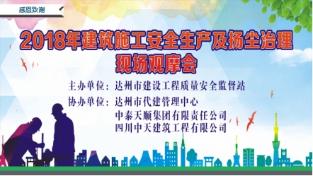 2018年7月13日上午,達州市2018年建筑施工安全生產及揚塵治理現場觀摩會在四川中天建筑工程有限公司承建的“達州政務服務綜合大樓”施工現場召開,相關施工項目建設、管理、施工單位負責人及安全、揚塵管理人員和該項目現場施工人員共266人參加會議。