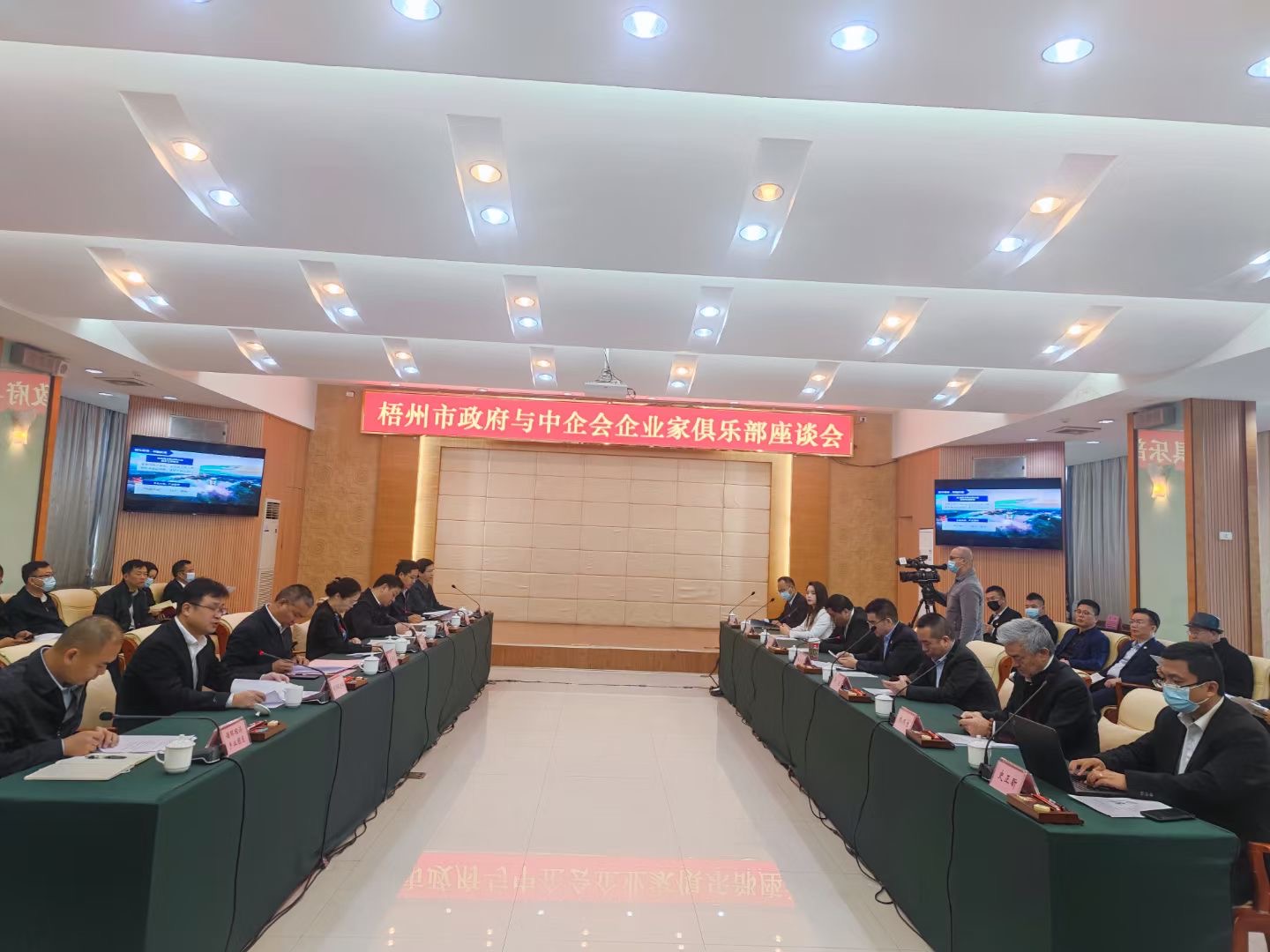 2021年11月11日中天九州建工集團有限公司董事長陳滿春、全國道德模范、全國勞動模范、江蘇黃埔再生資源利用有限公司董事長陳光標與中企業企業家俱樂部一行到廣西梧州考察并座談,市委書記蔣連生,市長鐘暢資出席座談會,市委常委、秘書長盧新華,市委常委、統戰部部長何世恰,市投促局局長于毅輝參加座談會。